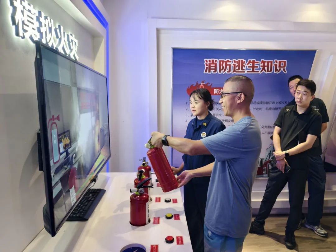 科普阵地沉浸学,自救本领握手中。 在消防科普教育基地,这里不再是枯燥的知识展板,而是充满互动的“安全实验室”。在模拟烟雾弥漫的逃生通道里,大家躬身捂鼻,亲历了一次逼真的疏散逃生;在火灾隐患查找区,日常被忽略的细节被一一放大警示;最受欢迎的当数灭火实操区,消防宣传员现场演示电器起火如何正确覆盖扑灭,随后每位参与者都拿起灭火器,对准模拟火焰根部果断喷射。知识与技能,在亲手操作中真正内化为守护安全的本领。