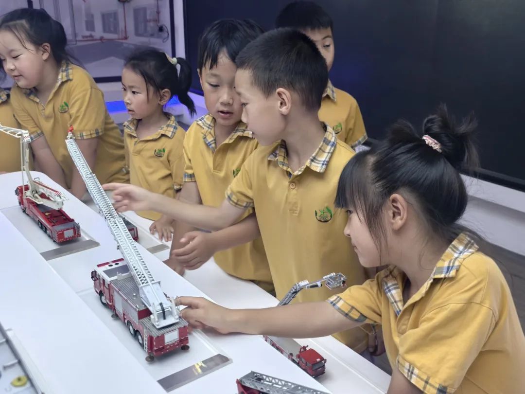 在科普教育基地,一场深入浅出的安全之旅正在进行……讲解员化身“时光向导”,带孩子穿越消防历史,探寻人类与火共处的千年智慧结晶,理解防火救火理念的深刻演变。在消防车模型展示区,从马拉消防车到云梯消防车、泡沫消防车的变化,这跨越时代的智慧结晶,引得小小脑袋惊叹连连,也悄然播下了安全理念与时代俱进的种子。