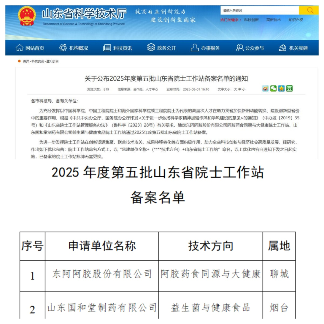 近日,山东省科技厅正式发布《关于公布2025年度第五批山东省院士工作站备案名单的通知》,山东国和堂制药有限公司申报的院士工作站成功入选,这也是烟台高新区建成的第6个省级院士工作站。