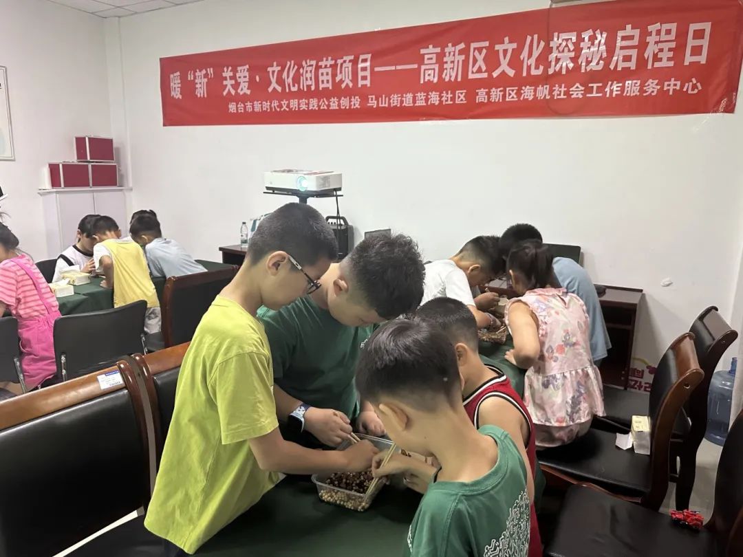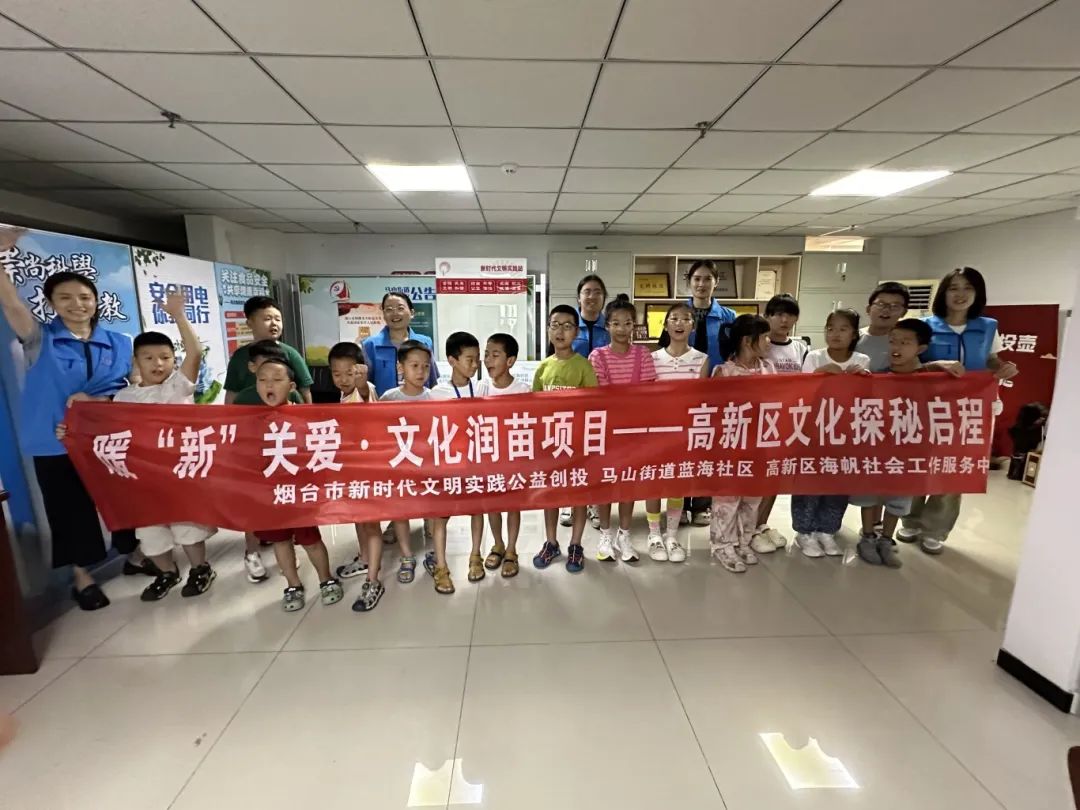夏日的清风拂过,由烟台市委宣传部、烟台市新时代文明实践指导中心主办,烟台高新区海帆社会工作中心承接的暖“新”关爱·文化润苗项目走进烟台高新区马山街道蓝海社区。近日,“暖‘新’关爱·文化润苗”项目正式启动,启动仪式上,工作人员热情介绍了项目宗旨:通过系列精心设计的文化与实践活动,引导青少年们深入感受烟台高新区独特的科技脉动与文化魅力。