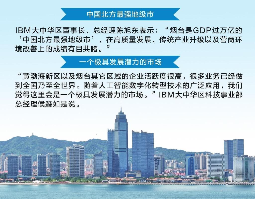 “黄渤海新区以及烟台其它区域的企业活跃度很高,很多业务已经做到全国乃至全世界。随着人工智能数字化转型技术的广泛应用,我们觉得这里会是一个极具发展潜力的市场。”IBM大中华区科技事业部总经理侯淼如是说。