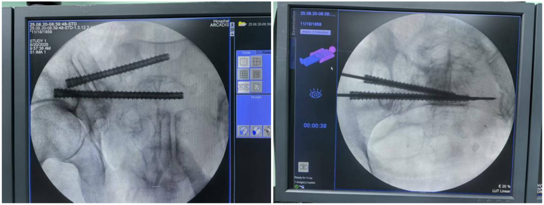 术中在机器人的导航下顺利植入骶髂螺钉。