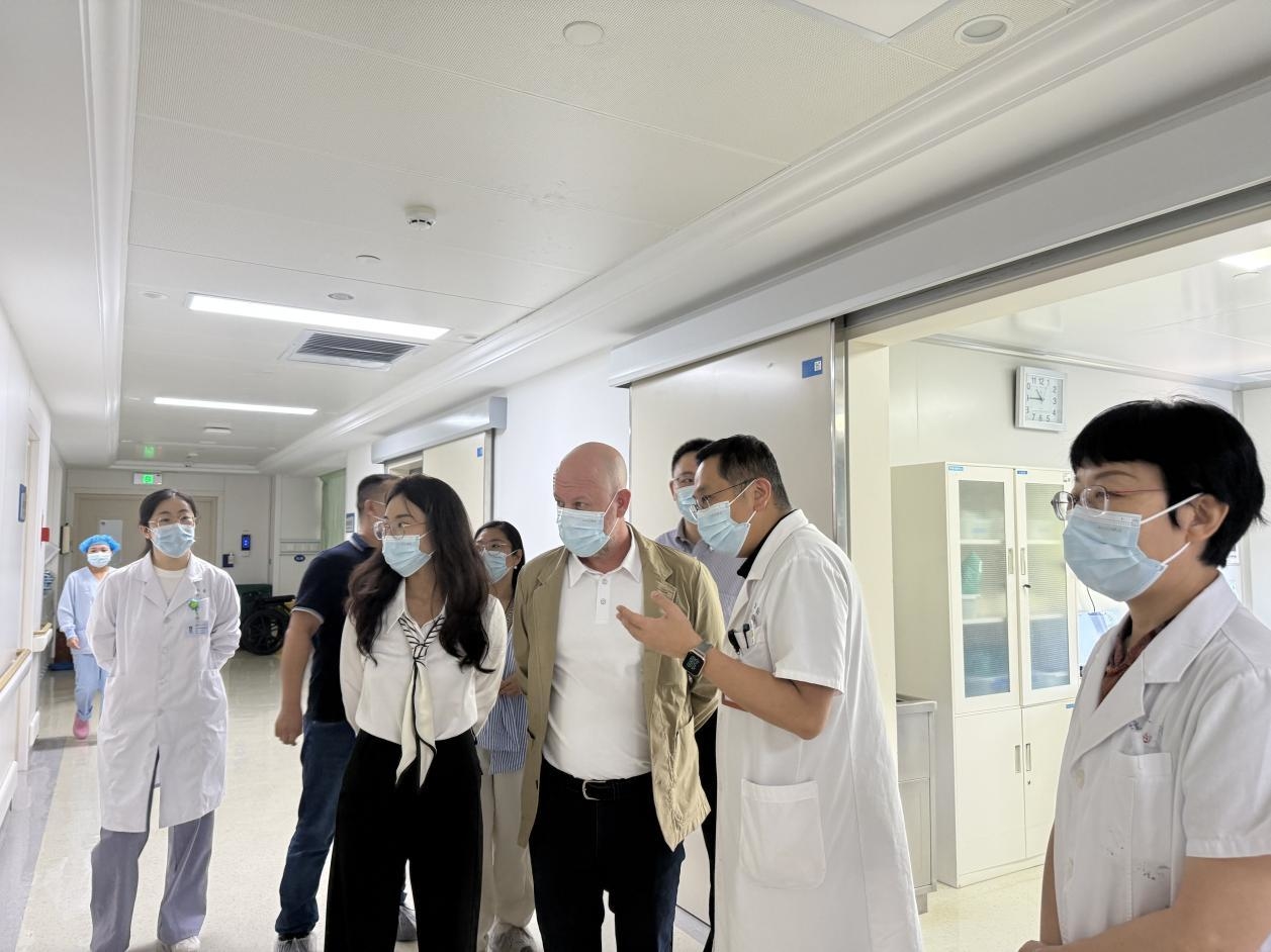 会议交流结束后,在于鹏飞副主任的陪同下,Pritchett教授一行参观了医院呼吸内镜中心,实地走访了呼吸内镜相关功能区域。他详细了解了中心的流程管理、质量控制工作以及无痛内镜诊疗技术的开展情况,对中心目前无痛内镜比例超过90%的成绩表示赞赏。双方还就外周结节诊疗、RAB引导肺外周病变消融等场景的临床规范与合作方向进行了进一步交流。
