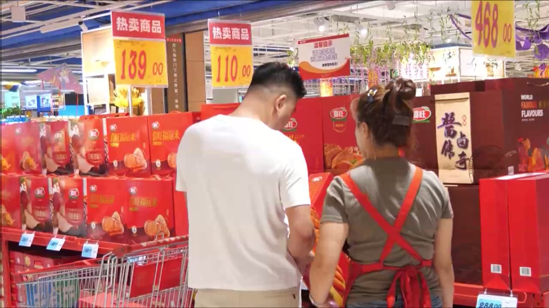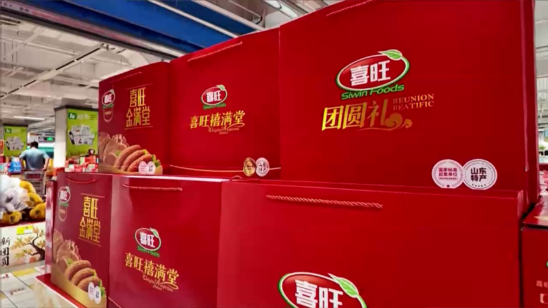 烟台融媒9月17日讯 今年中秋和国庆双节叠加,将进一步带动消费热潮。作为我市肉食企业头部品牌的喜旺食品为中秋市场研发生产了丰富的礼盒产品,抓住市场机遇,抢占消费市场。