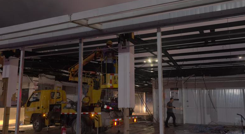 记者在现场看到,原北马路汽车站候车厅已经拆除过半。几位施工人员正在对屋顶进行切割作业,还有一些工人负责将拆除下来的板材进行装车。在候车厅北侧,原本的建筑已经完成拆除,几辆渣土车将连夜进行垃圾外运。