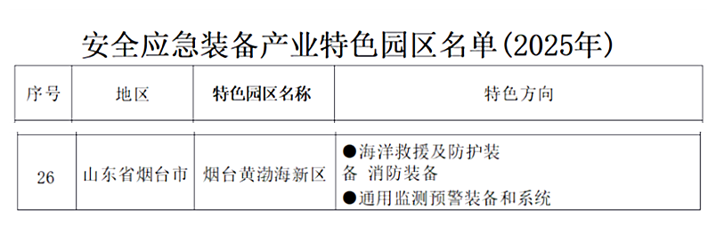 近日,工业和信息化部公布全国首批安全应急装备产业特色园区名单,烟台黄渤海新区榜上有名,成为全市唯一入选的园区。
