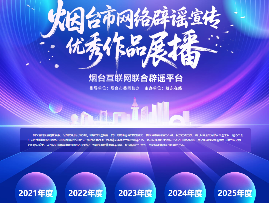 由烟台市委网信办指导、胶东在线主办的“烟台市网络辟谣宣传优秀作品展播”专栏正式上线。该专栏集纳了2021年以来烟台市评选出的100余部优秀辟谣作品,涵盖文章、平面、视频等多种类型。该专栏旨在通过集中展示与正向引导,全面提升市民网络谣言辨识能力与用网素养,营造“不造谣、不信谣、不传谣”的健康网络生态,凝聚共识,更好守护清朗网络空间。
