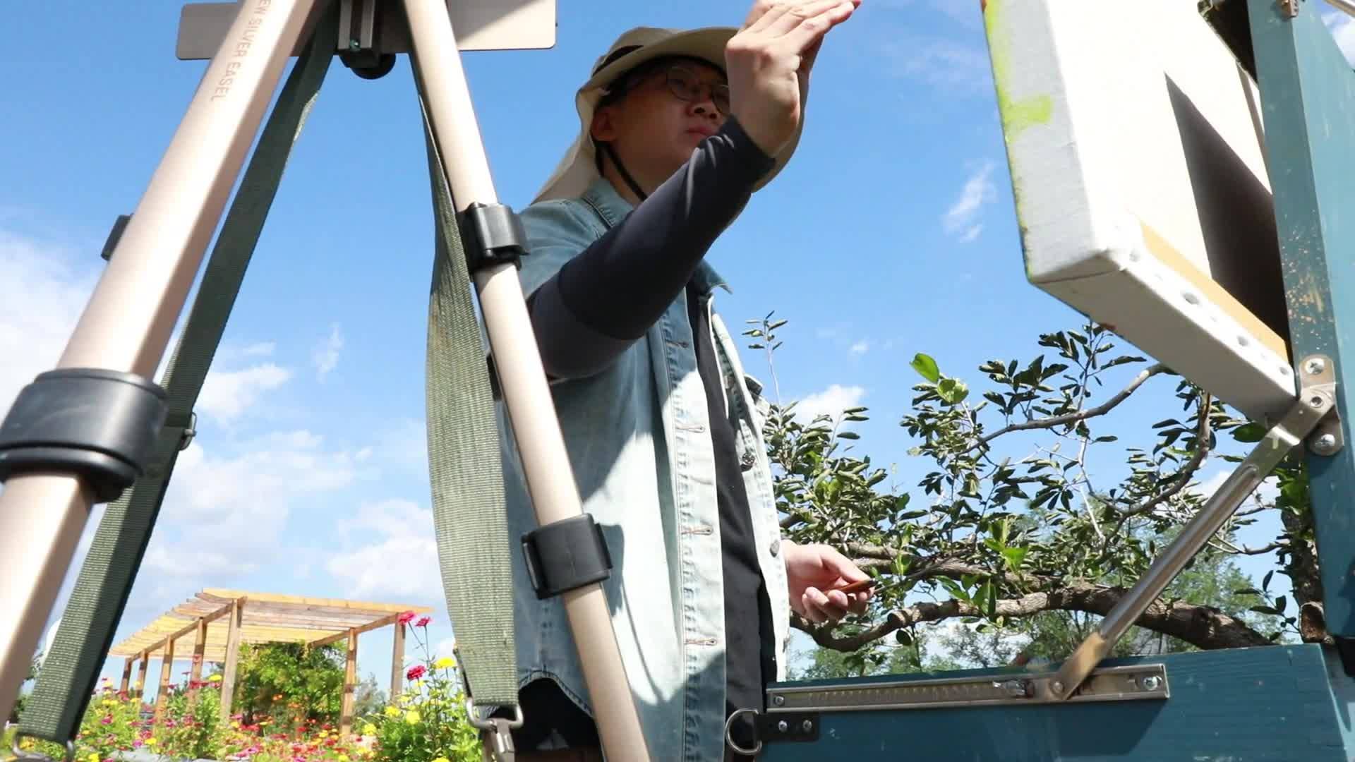 清晨山间,偶遇一位画家在路边支起画架,描绘他眼中的处处都可入画的丰收节主会场——大户陈家。