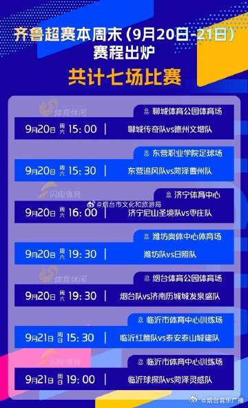 “齐鲁超赛”本周末(9月20日-21日)赛程出炉,球迷速码!