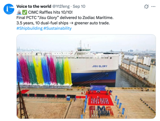 6.【凤凰网】中集来福士十艘双燃料船圆满交付! Jisu Glory号启航绿色汽车贸易新航道