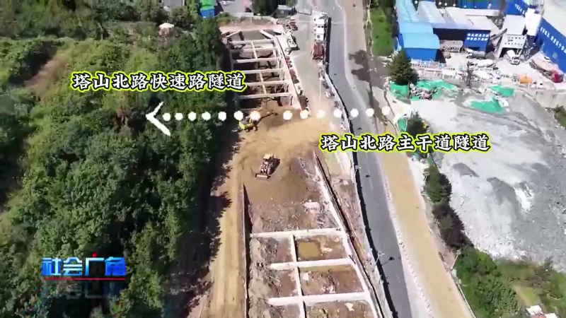 这部分施工路段就在已封闭的山海快速路北端,建成后是上下两层的结构,将衔接山海快速路和塔山北路快速路,连通西侧的塔山北路快速路隧道和东侧的塔山北路主干路隧道,是快速路重要的交通枢纽部分。