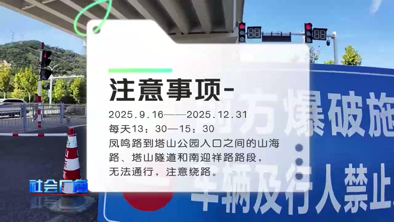 根据爆破施工要求,自2025年9月16日起至2025年12月31日,每天13:30—15:30对这一区域进行全线封闭爆破作业。这两个小时间,凤鸣路到塔山公园入口处的山海路、塔山隧道和南迎祥路路段,都无法通行。来往车辆需提前绕行观海路、胜利路、通世路。