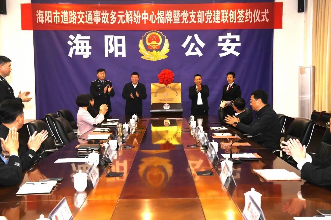 4月29日,海阳法院与海阳公安成立道路交通事故多元解纷中心
