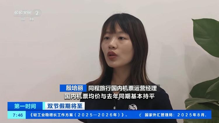 同程旅行国内机票运营经理 殷培丽:国内机票均价与去年同期基本持平,呈现“首尾高、中间低”的特征,小众目的地受到青睐,反向旅行趋势显著。截至9月11日,假期出行的国内机票搜索热度增幅最大的城市分别为:伊宁、泸州、海拉尔、揭阳、赣州、扬州、徐州、芒市、阿勒泰、遵义。
