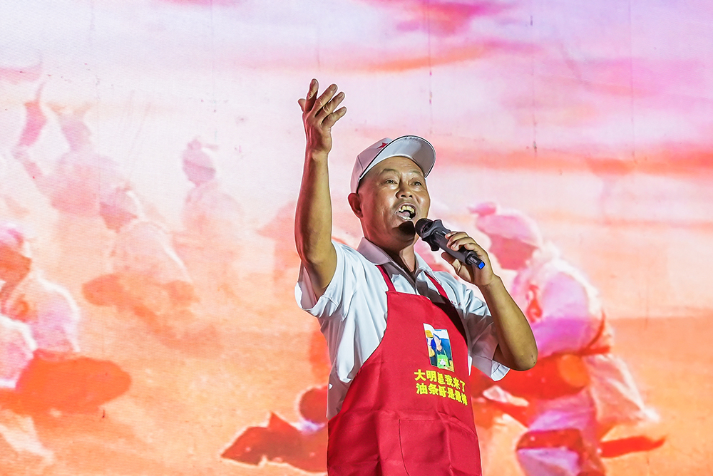 “村咖靓声”赛道为非专业歌手提供了一个放声歌唱、展示自我的舞台。在这一赛道,来自海阳的“油条哥”修文军以《西部放歌》《新货郎》《乌苏里船歌》三首歌曲征服全场。他嗓音高亢嘹亮,演唱富有感染力,将乡村人民的质朴情怀与豪迈气概展现得淋漓尽致。