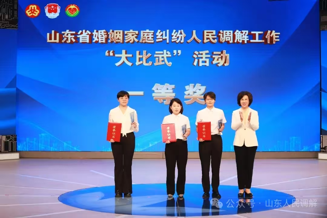 9月18日至19日,山东省婚姻家庭纠纷人民调解工作“大比武”活动成功举办。烟台市选手牟平区婚姻家庭纠纷人民调解委员会调解员王靖历经笔试、模拟调解、知识竞答等环节,从16市参赛选手中脱颖而出,荣获全省第一名!烟台市司法局获优秀组织奖。