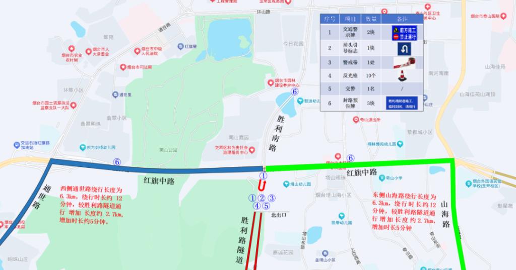 记者从施工部门了解到,因烟台市城市快速路塔山北路(黄金顶隧道西出口-山海路)建设工程上跨胜利路隧道施工完成,需对胜利路隧道内防护网进行拆除,自2025年10月9日起至2025年10月14日,每天晚上23:00—次日凌晨4:00对胜利路隧道全线封闭进行防护网拆除作业。全封闭施工时胜利路隧道双线均无法通行,过往车辆需提前绕行通世路或山海路。