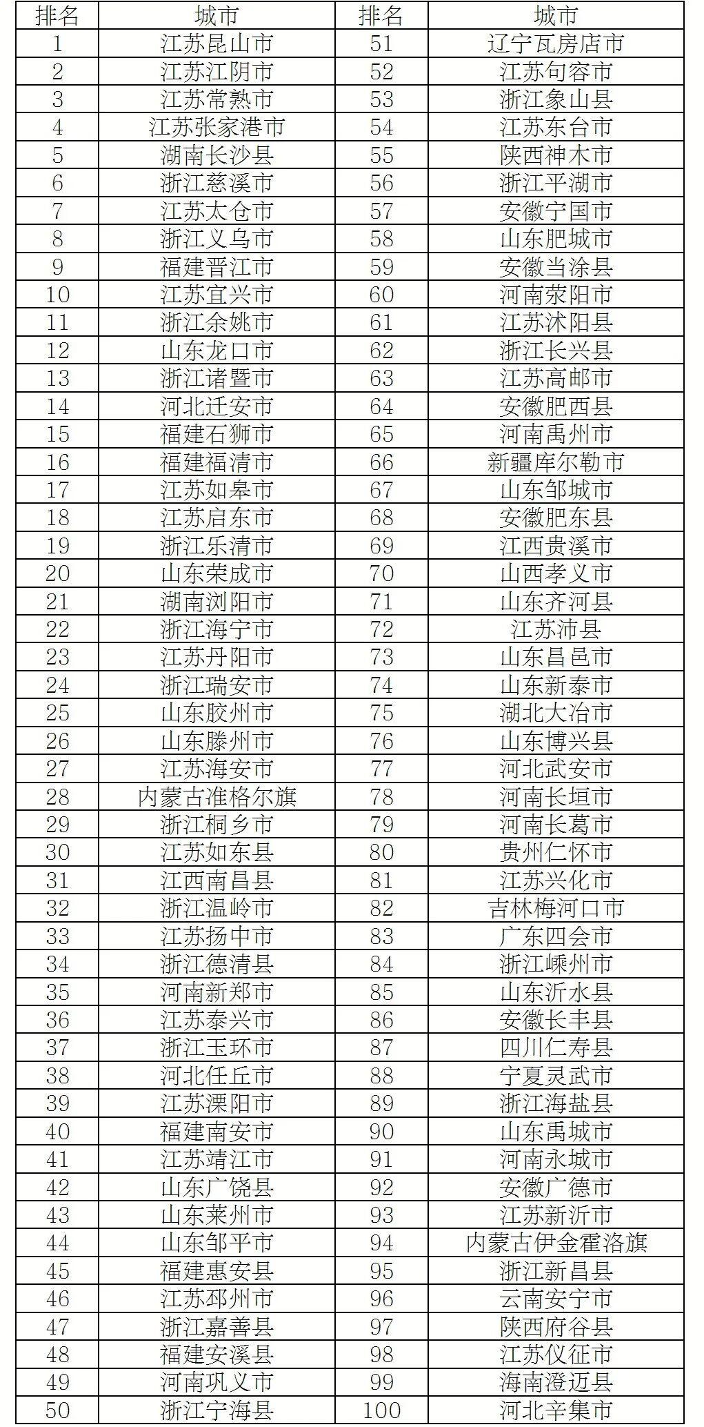 2025年度全国综合实力百强县市