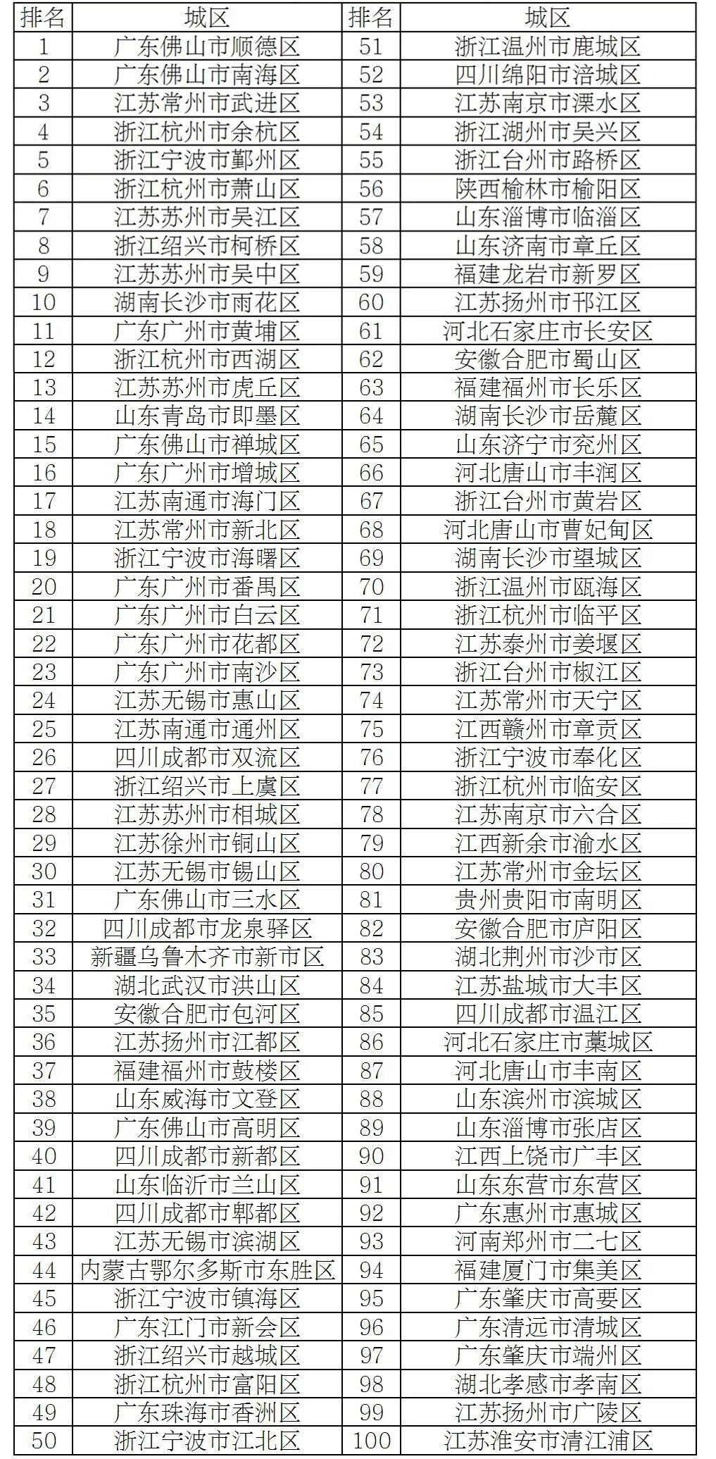 2025年度全国综合实力百强区中,山东9地入选,分别是:青岛市即墨区(14位)、威海市文登区(38位)、临沂市兰山区(41位)、淄博市临淄区(57位)、济南市章丘区(58位)、济宁市兖州区(65位)、滨州市滨城区(88位)、淄博市张店区(89位)、东营市东营区(91位)上榜。