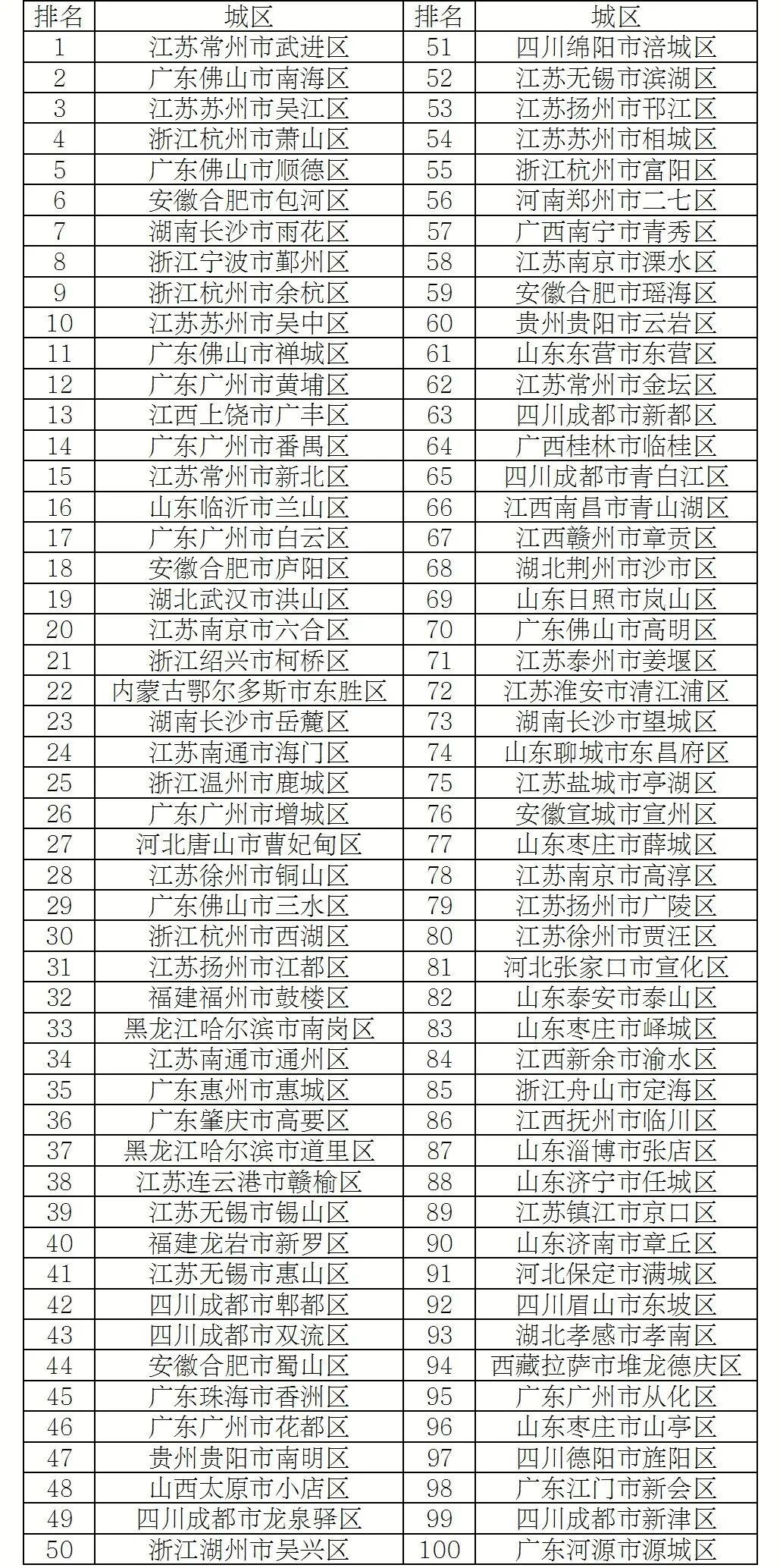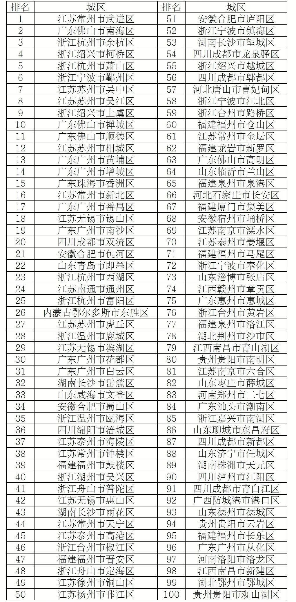 2025年度全国综合实力百强区