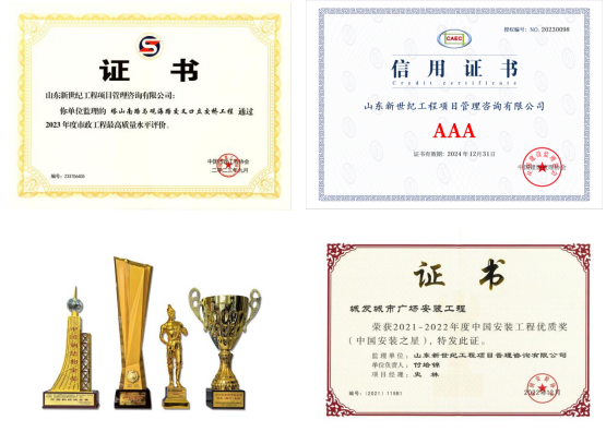 公司先后斩获“国家级重合同守信用企业”“工人先锋号”“援川工作先进集体”等荣誉,彰显了在诚信经营、团队建设与社会服务领域的突出贡献;凭借技术创新,被山东省科学技术厅认定为“科技型中小企业”。公司连续多年荣获中国建设监理协会、中国建设工程造价管理协会“AAA 级企业”及山东省建设监理与咨询协会“5A 级监理企业”“先进监理企业”等荣誉称号,成为行业信誉与实力的标杆。