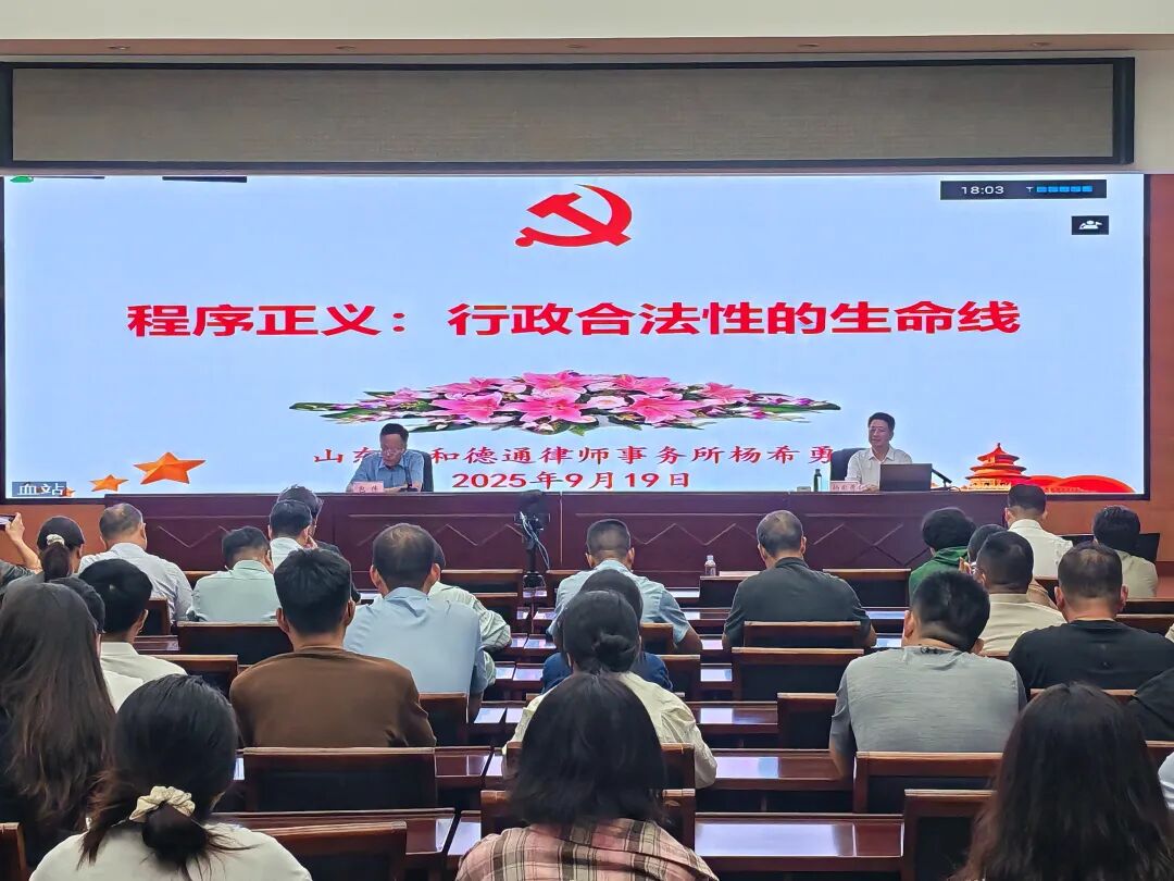 为深入落实法治政府建设要求,进一步提升全市卫健系统干部职工法治素养,规范行业执法行为,9月19日下午,烟台市卫生健康委邀请烟台律师协会会长、山东三和德通律师事务所党支部书记杨希勇围绕“从《山东省行政程序规定》看依法行政中程序合法的重要性”主题进行专题辅导。