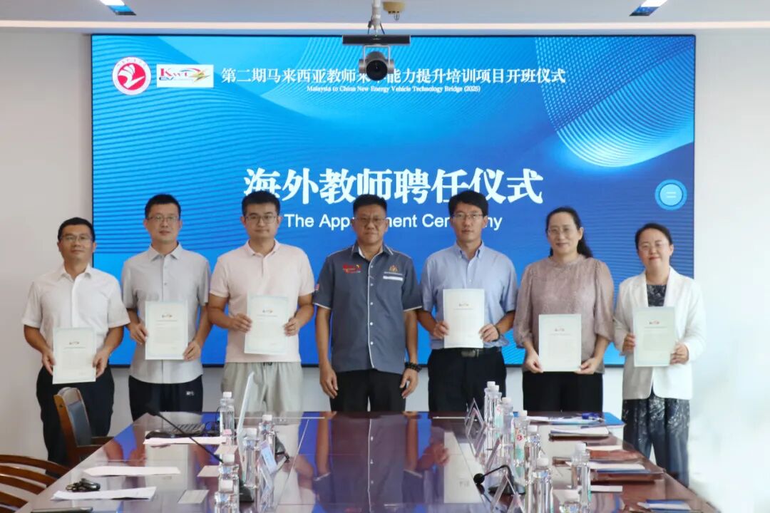 作为中马产教国际合作项目的重要组成部分,马来西亚教师将在学校开展为期3个月的学习,参与新能源汽车专业课程、企业实践,体验中国传统文化。会上,邱文光代表KWT新能源汽车学院向学校参与此次项目的六名新能源汽车专业教师颁发了海外教师聘任证书。