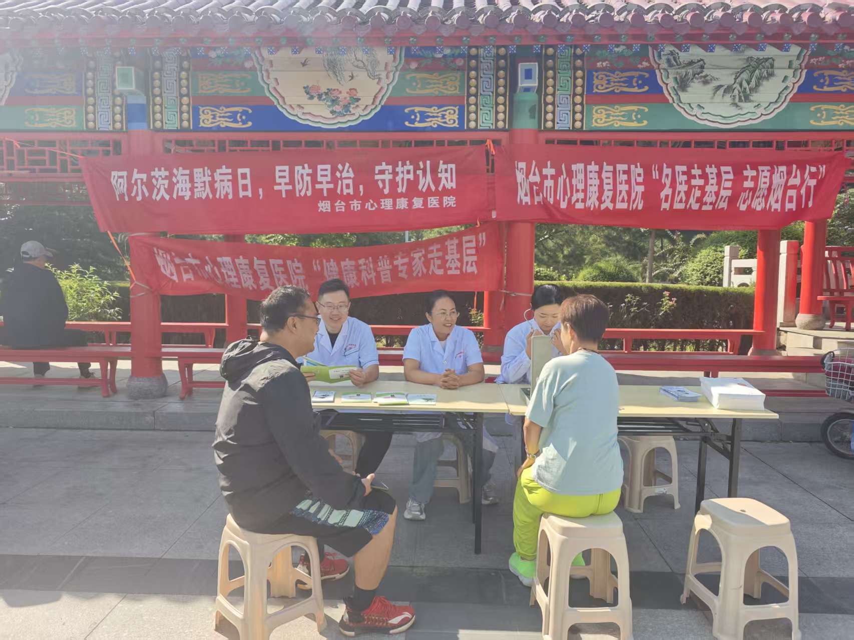 烟海e家9月23日讯(通讯员 孙晓梦)9月 21日,在“世界阿尔茨海默病日”当天,烟台市心理康复医院组织义诊服务队来到莱阳市蚬河公园,开展“9·21”老年期痴呆防治全省联动义诊日活动,提升公众对阿尔茨海默病的认知和防治水平。