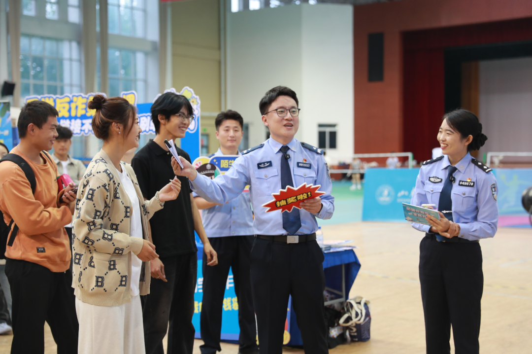 在沙包挑战区,举办反诈大闯关互动游戏,设置了识别诈骗类型的多个趣味关卡,如“刷单返利诈骗”“冒充客服诈骗”“网络游戏诈骗”等,同学们在现场参与闯关,通过辨别虚假信息、识破诈骗话术、模拟应对诈骗场景等环节,在实践中提升反诈能力,成功闯关的同学能获得印有反诈标语的特色纪念品。