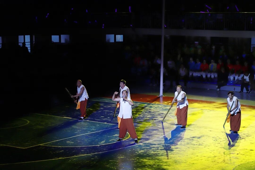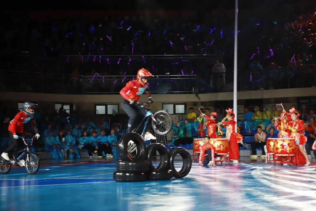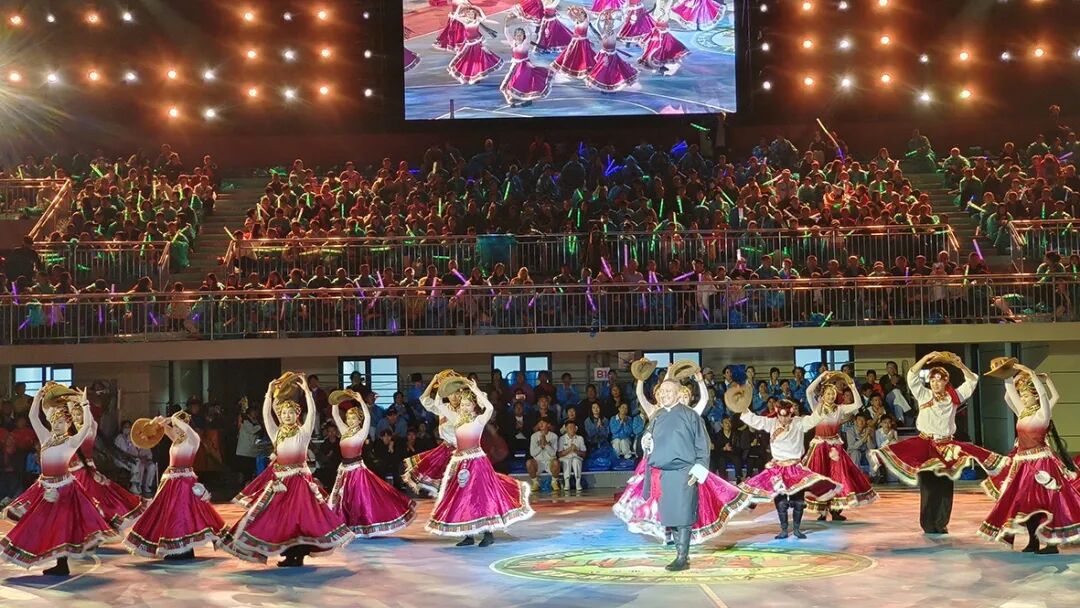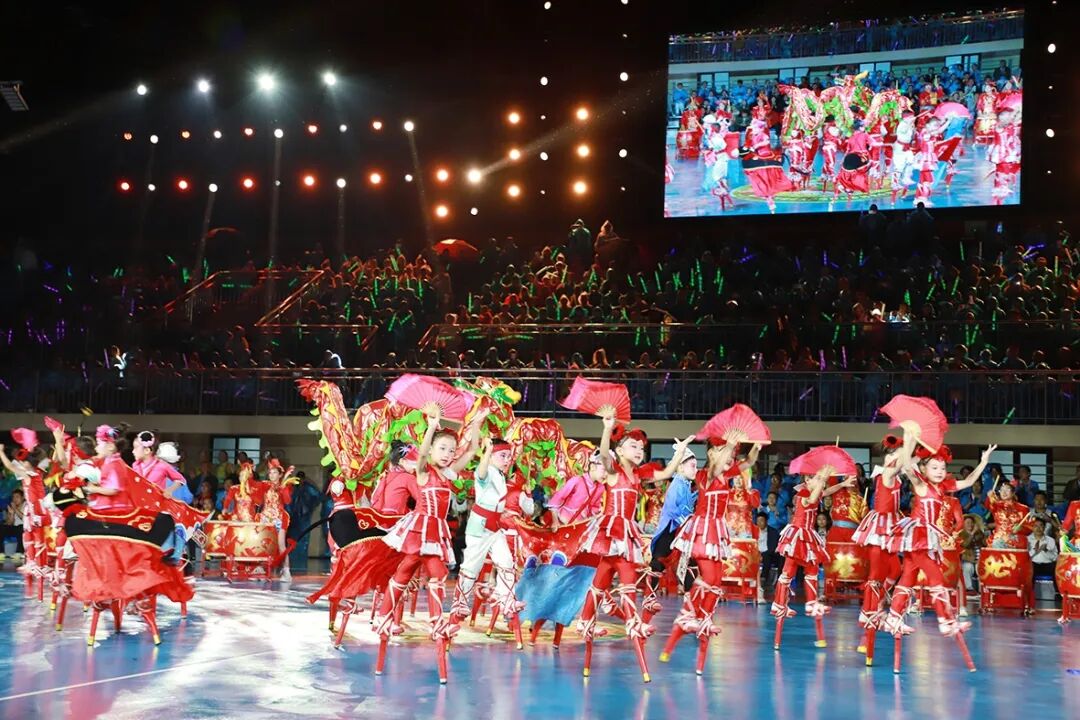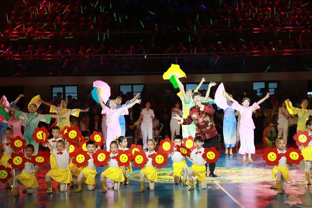 在锣鼓声中,来自实验幼儿园金娃艺术团的小朋友们踩着高跷,舞出《五谷丰登欢歌扬》,为“村”晚拉开了序幕。