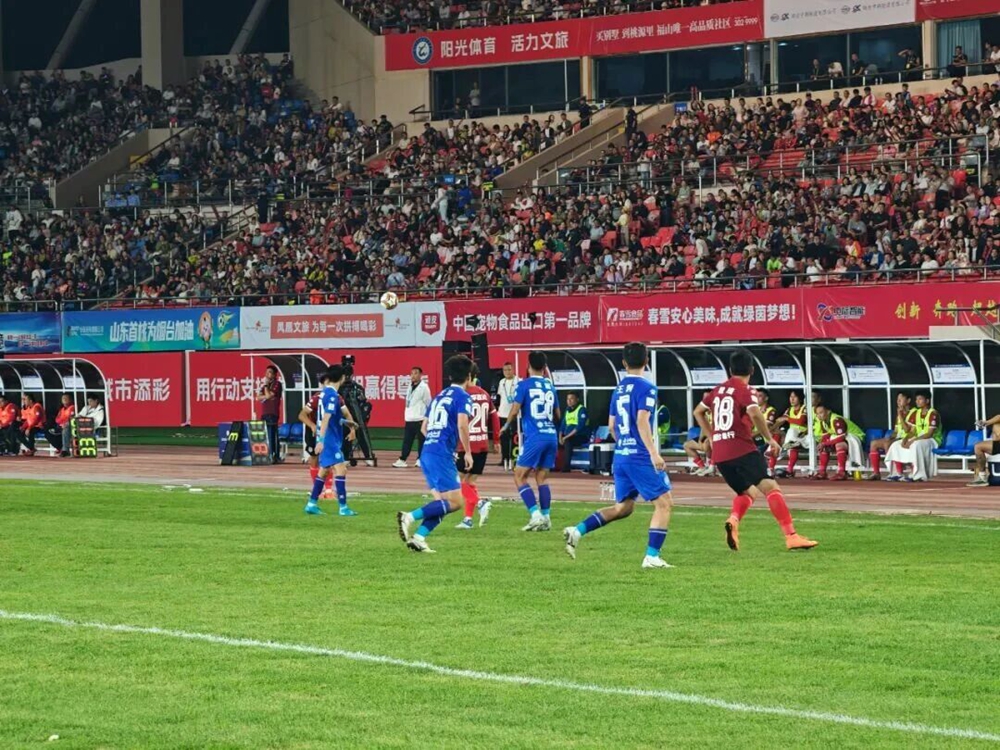 哨声吹响,开局双方就拼尽全力!比赛第23分钟,烟台队拿到在齐鲁超赛的首个进球,将比分扳成一比一平。