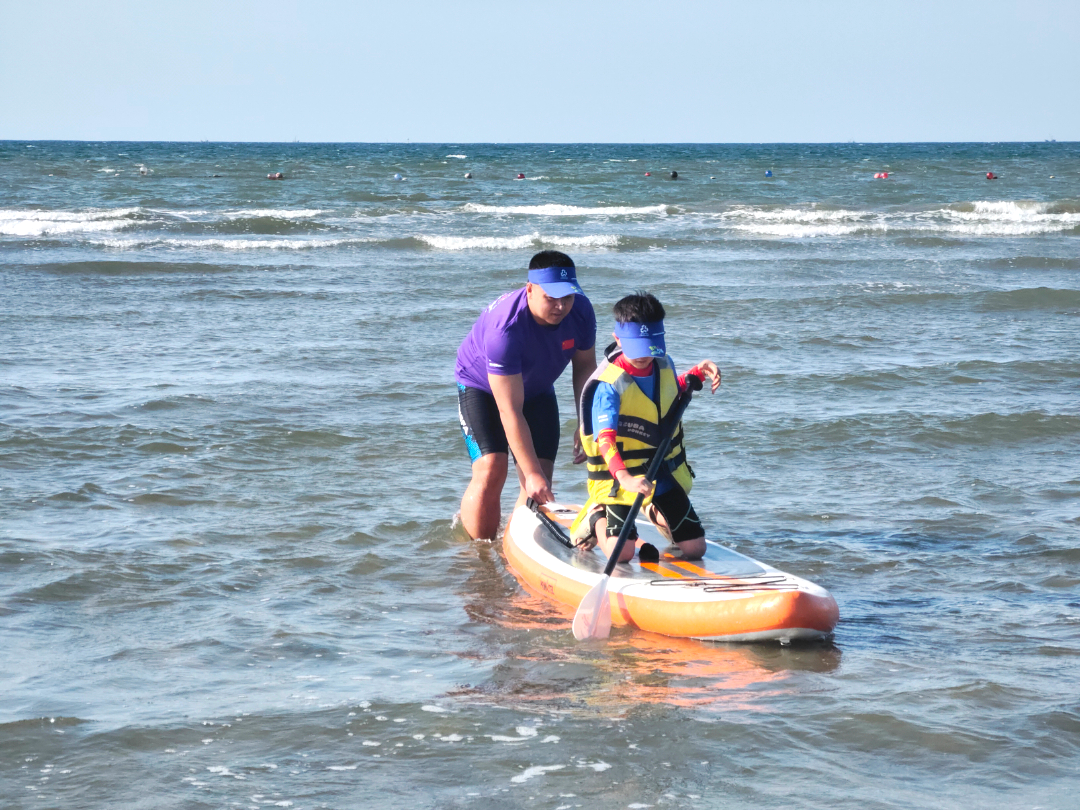 本次活动由国家体育总局水上运动管理中心主办,烟台市桨板体育俱乐部有限公司承办,活动得到芝罘区体育运动服务中心和深蓝文旅的大力支持。全区30名7-18岁的青少年桨板爱好者积极参与活动。