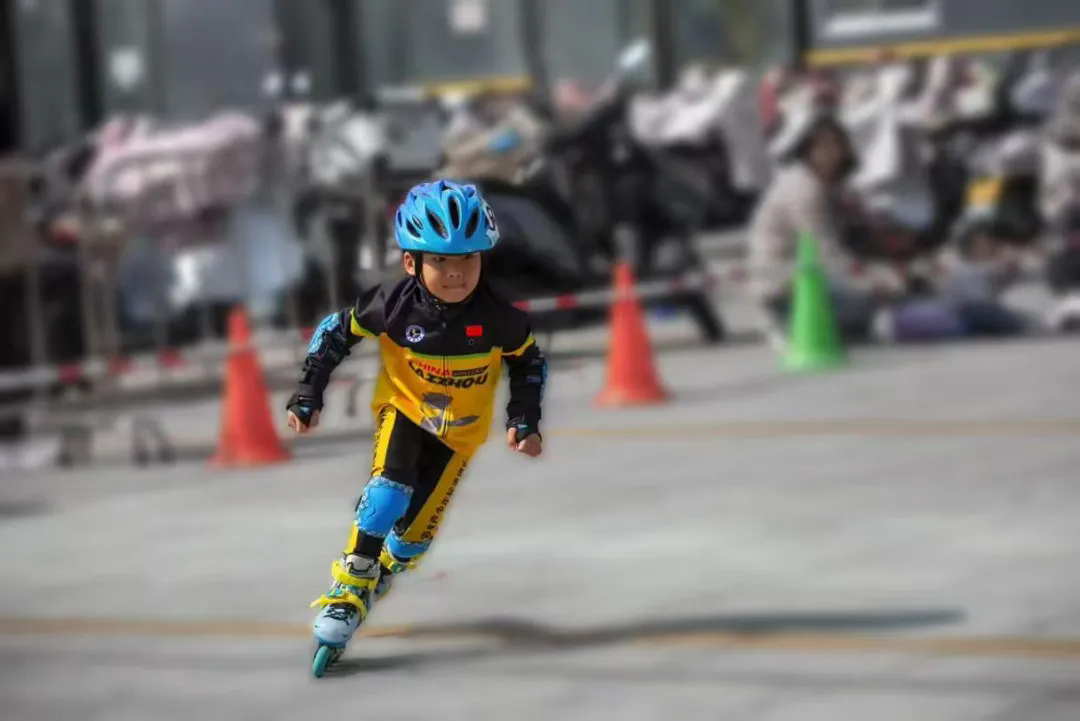 比赛现场,轮滑小选手们身着专业装备,蓄势待发。随着一声号令响起,选手们如离弦之箭,在赛场上风驰电掣。他们矫健的身姿、流畅的滑行,凭借力量和技巧的完美结合,上演了紧张刺激的超越与冲刺。观众们的欢呼声和加油声此起彼伏,将比赛氛围推向高潮。
