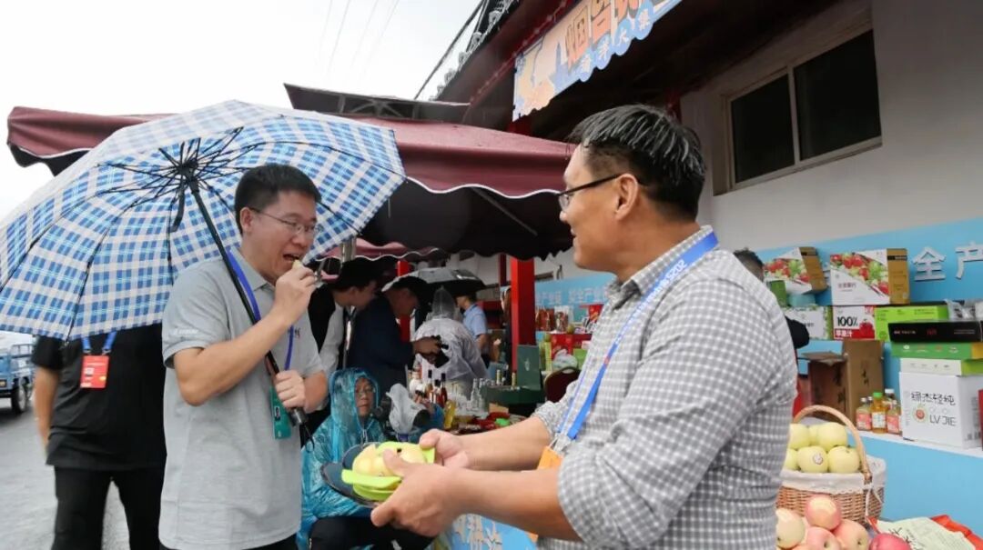 尽管细雨连绵,但欢庆农民丰收节的热度丝毫不减。参观的市民络绎不绝,对栖霞展出的农产品和手工艺品表现出浓厚兴趣。
