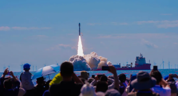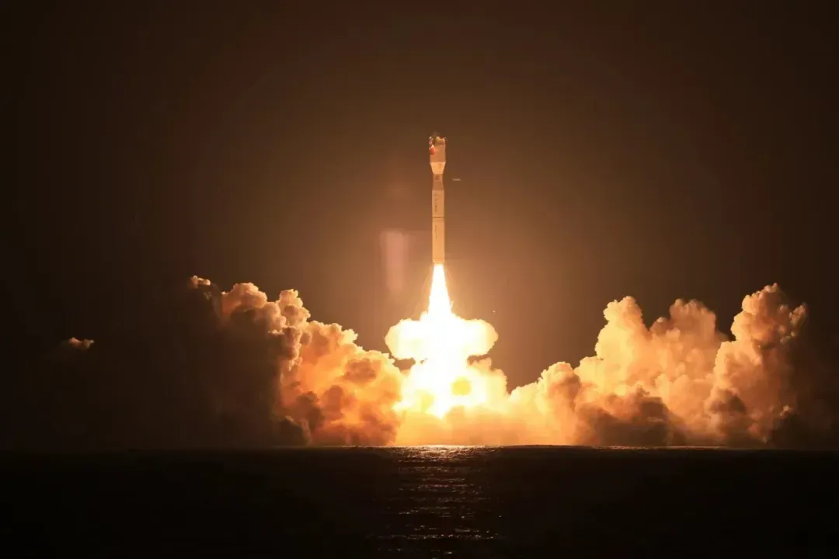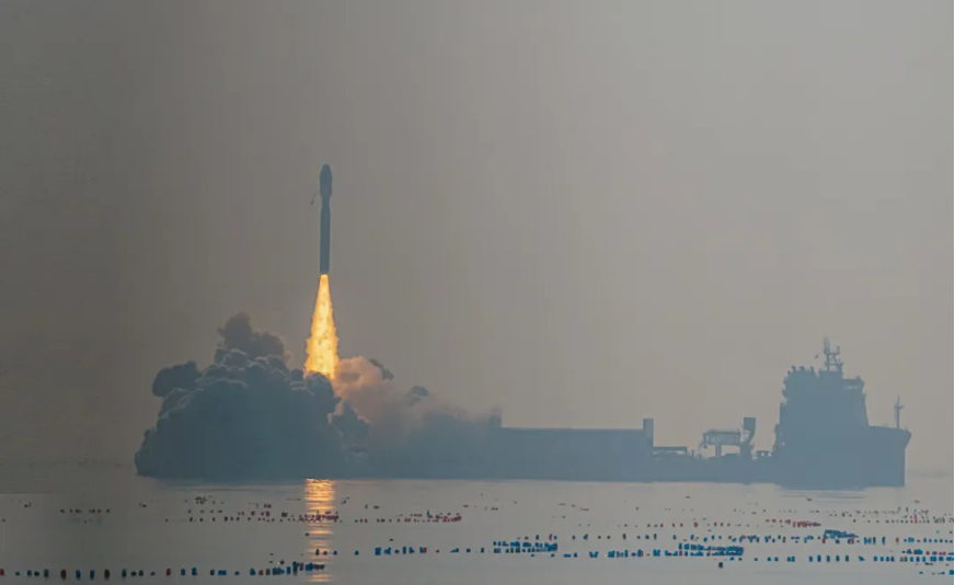 2025年8月9日,由海阳东方航天港总装出厂的捷龙三号遥六运载火箭,搭乘“东方航天港”号发射船,在山东省近海海域点火升空,采用一箭十一星的方式将吉利星座04组卫星送入预定轨道,发射任务取得圆满成功。