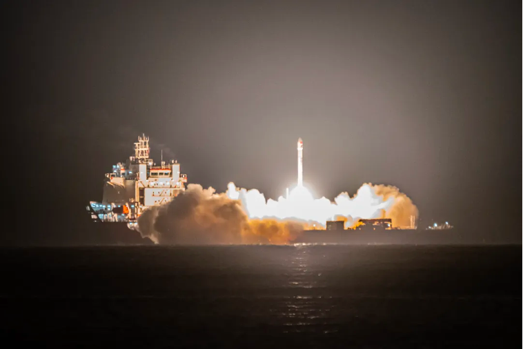 2022年4月30日,第三次海上发射是国内首次“一站式”海上发射,实现火箭总装、总测、出港、发射一体化历史性突破。