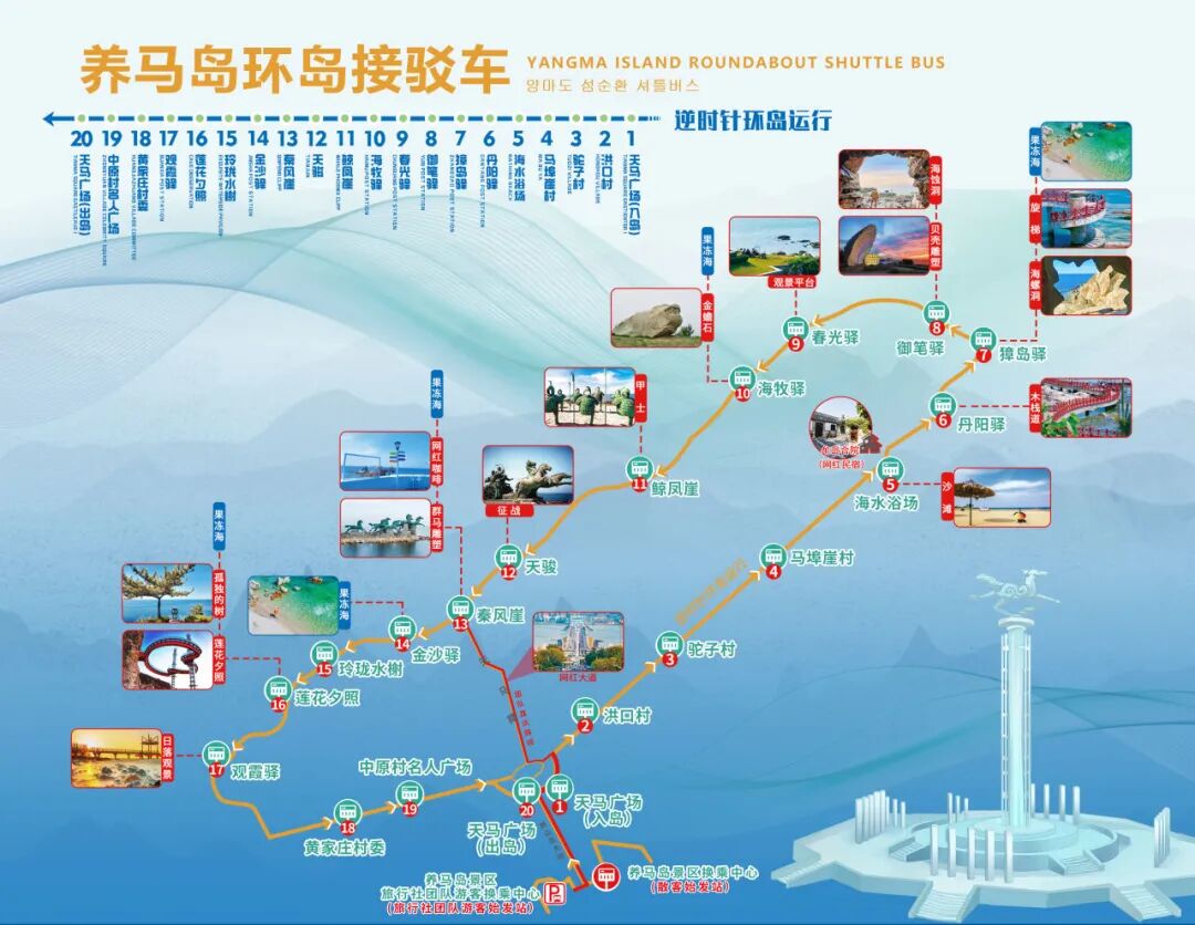 (1)乘坐出租车(含合法备案的网约车)的市民及游客,可通过“养马岛换乘中心停车场”分拣系统直接入岛,并在天马广场或海水浴场下车,换乘接驳车游览;或在换乘中心停车场下车,乘坐接驳车游览。