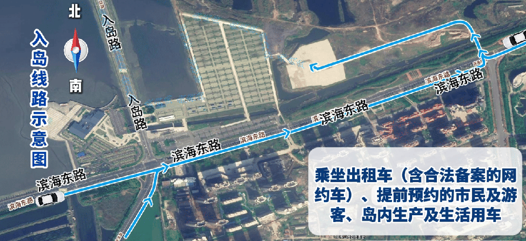 (3)岛内生产经营及生活用车,通过“养马岛换乘中心停车场”分拣系统直接入岛。