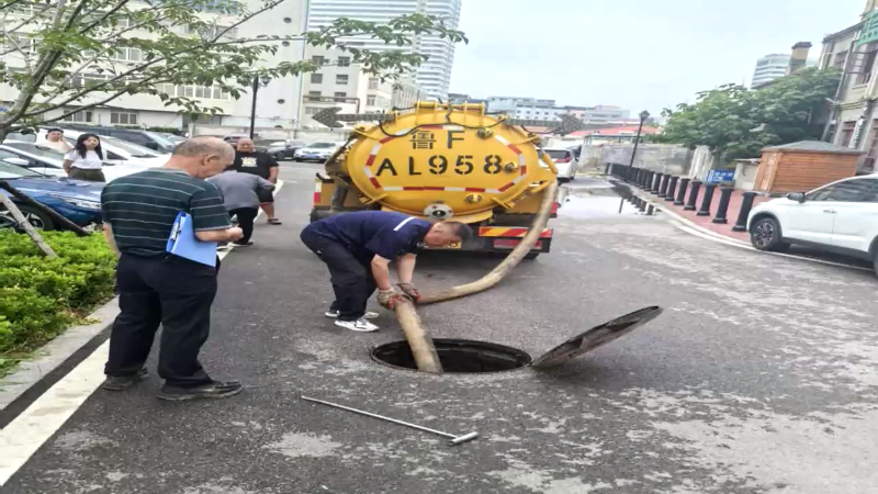 烟台市城市运行中心组织烟台市城管局、市政公用集团、蓝天集团、烟建集团等相关部门和单位,就污水外溢问题进行现场核实。为切实厘清责任、解决问题,烟台市城管局现场调度烟台市排水服务中心对污水管网进行了疏通,确定了管线堵塞(或破损)具体位置。经现场会商,该问题由蓝天集团组织施工,烟建集团配合整改。蓝天集团安排施工机械对绿化带破损管道进行维修更换,并将停车场施工改造填埋的污水检查井加固起垫。经过两天的紧张施工,烟台山景区附近的蓝白快餐店门口污水外溢问题得到彻底解决。