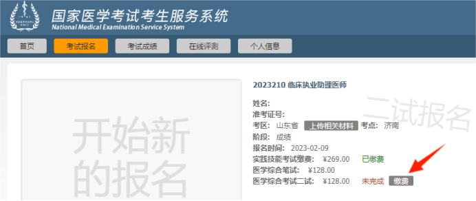 符合报考条件的考生登录国家医学考试网(www.nmec.org.cn)报名和缴费,缴费成功即完成报名,考生无须再进行现场审核。具体流程如下(以2023年报名操作步骤为例):