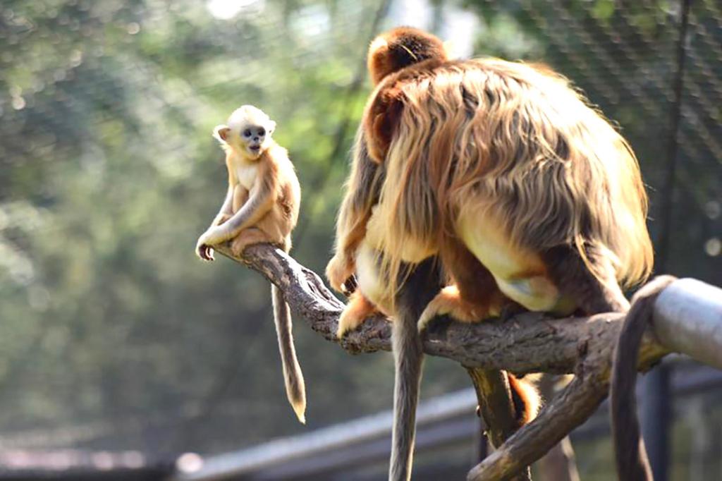 南山公园动物园内,川金丝猴“大大”和“静静”的小宝贝迎来百天,目前小猴子健康活泼,国庆假期与游客正式见面。