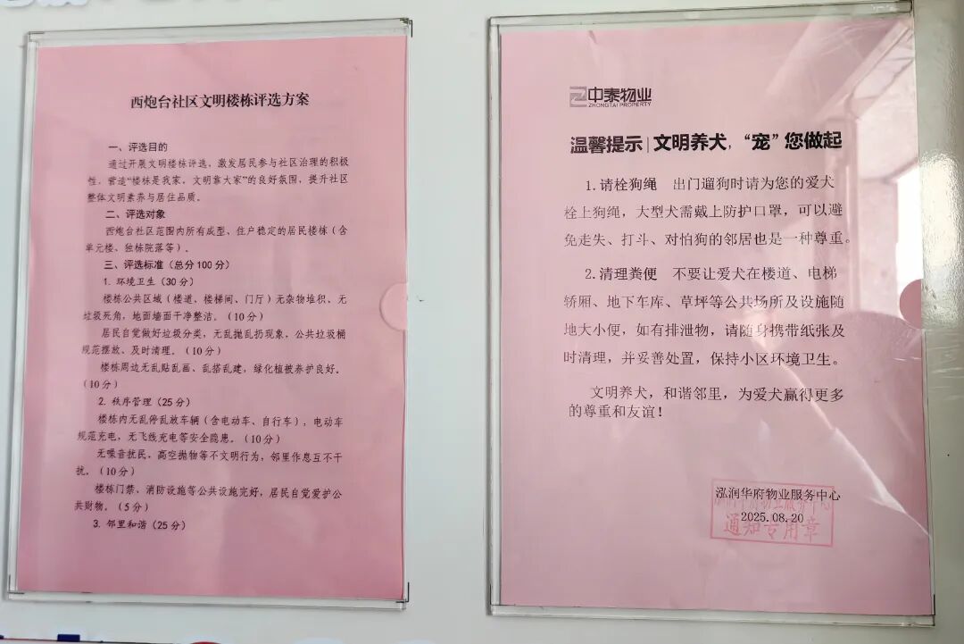 今年以来,为确保治理成果长效保持,通伸街道西炮台社区建立了常态化的“文明楼栋”评选机制,每季度定期开展评选工作。活动启动前,社区联合小区物业,在各楼栋宣传栏醒目位置张贴《“文明楼栋”评选方案》,清晰明确评选标准、流程及奖励办法,让每一位居民都能知晓规则、积极参与。