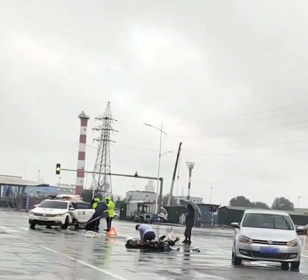 9月23日下午3时许,芝罘区环海路与幸福南路交会处路口,一场突发的交通事故打破了雨天的平静。一辆大货车与一辆电动车发生刮擦碰撞,巨大的冲击力导致电动车上的中年妇女重重摔倒在地,当场陷入昏迷,情况危急。