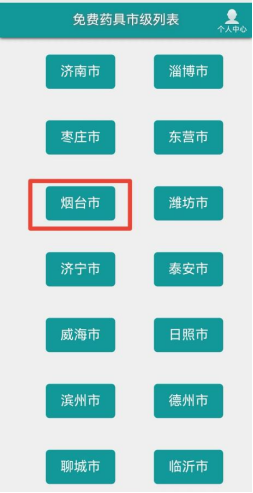 ⑤点击“烟台市”,进入后可以看到药具列表,点击选择需要的药具。