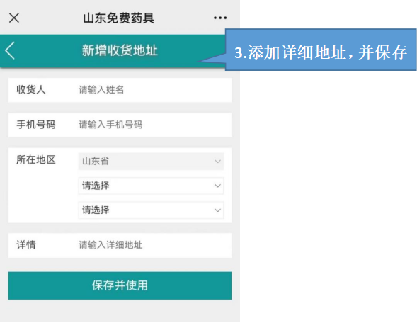 ⑦进入确认领取页面,若未添加收货地址,请按照下面的步骤正确添加详细地址。注意:烟台市辖区外地址无法邮寄。