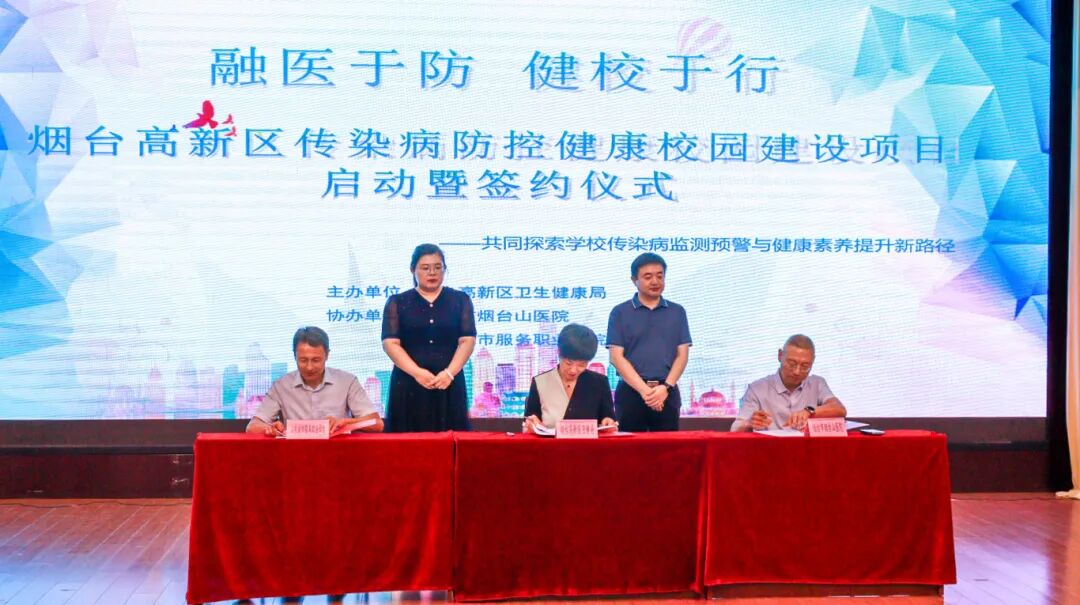 9月24日晚,烟台高新区传染病防控健康校园建设项目启动暨签约仪式在山东城市服务职业学院成功举办。仪式由烟台高新区卫生健康局主办,烟台市烟台山医院与山东城院共同协办,标志着“学校-卫健-医院”三位一体的校园传染病联防联控新机制正式建立,为山东城院健康校园建设开启了新篇章。