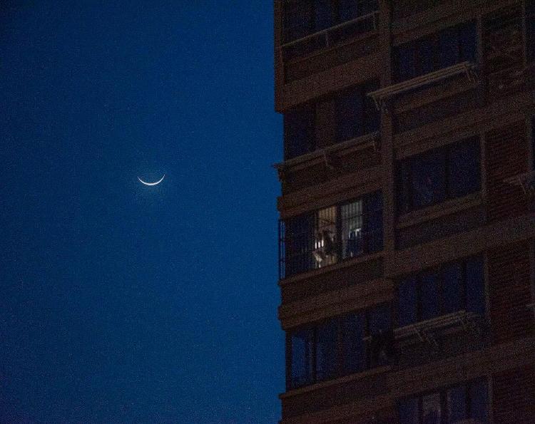 △2025年4月1日,安徽省淮北市,夜空中的超大蛾眉月。