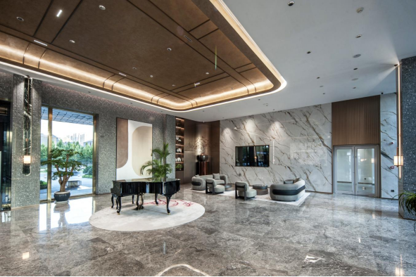 项目建筑立面沿用绿城经典Design系美学,采用超高窗地比设计,更大限度地提升视野与采光效果。配套方面,社区外部配套万方果岭公园,内部打造约88m门庭与潮汐明月宴。结合全龄段业主的品质生活需求,社区内配置约2200㎡高定会所,涵盖休闲、社交、运动、自助服务等多元化功能。物业服务方面,项目引入态势感知、无感通行、安消联动、访客预约四大智能系统,覆盖安防、服务、管理全链条。以百余项物业服务细节、365天*24小时全天候物业服务。