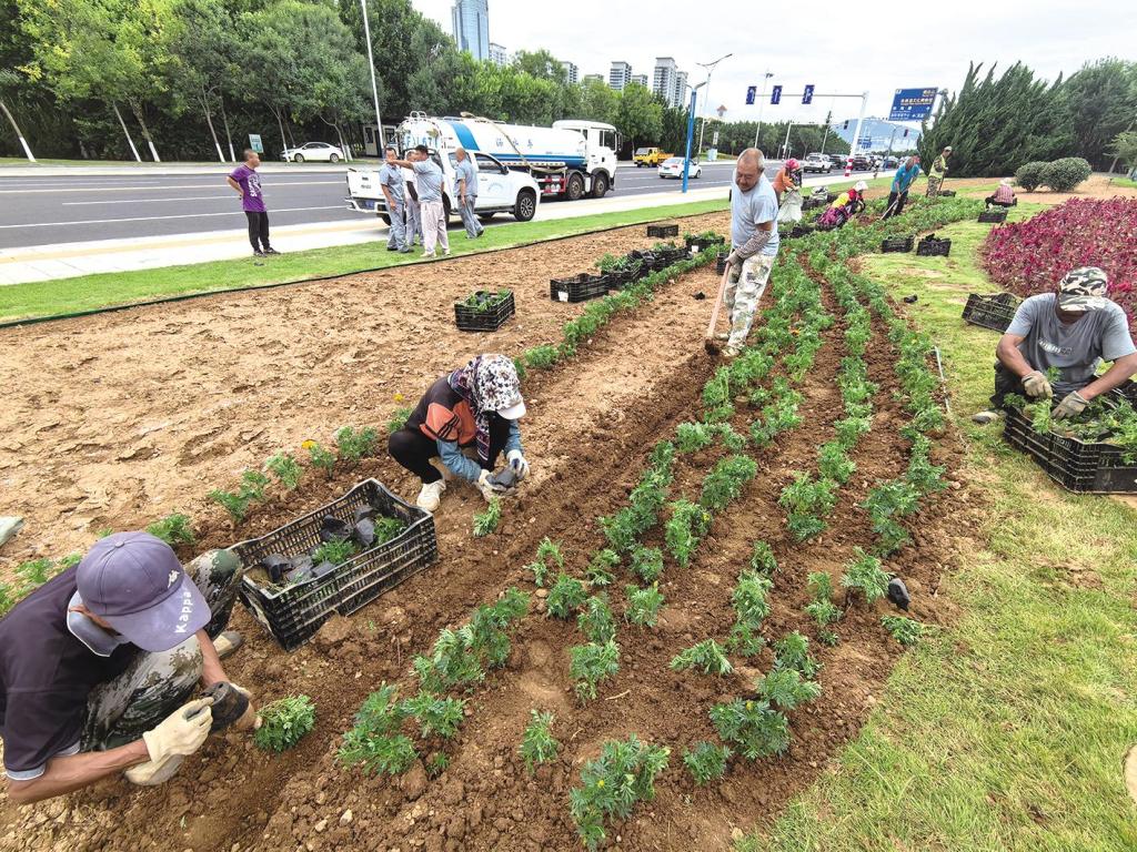 目前,各项景观布置与养护工作正加快推进,通过增花添彩与精细管护相结合,为广大市民游客呈现良好的城市绿化环境。