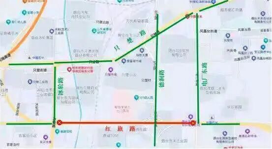 占用道路施工期间,建议过往车辆提前规划路线,选择周边道路绕行。红旗路周边区域通行车辆绕行:电厂东路-只楚路-冰轮路。